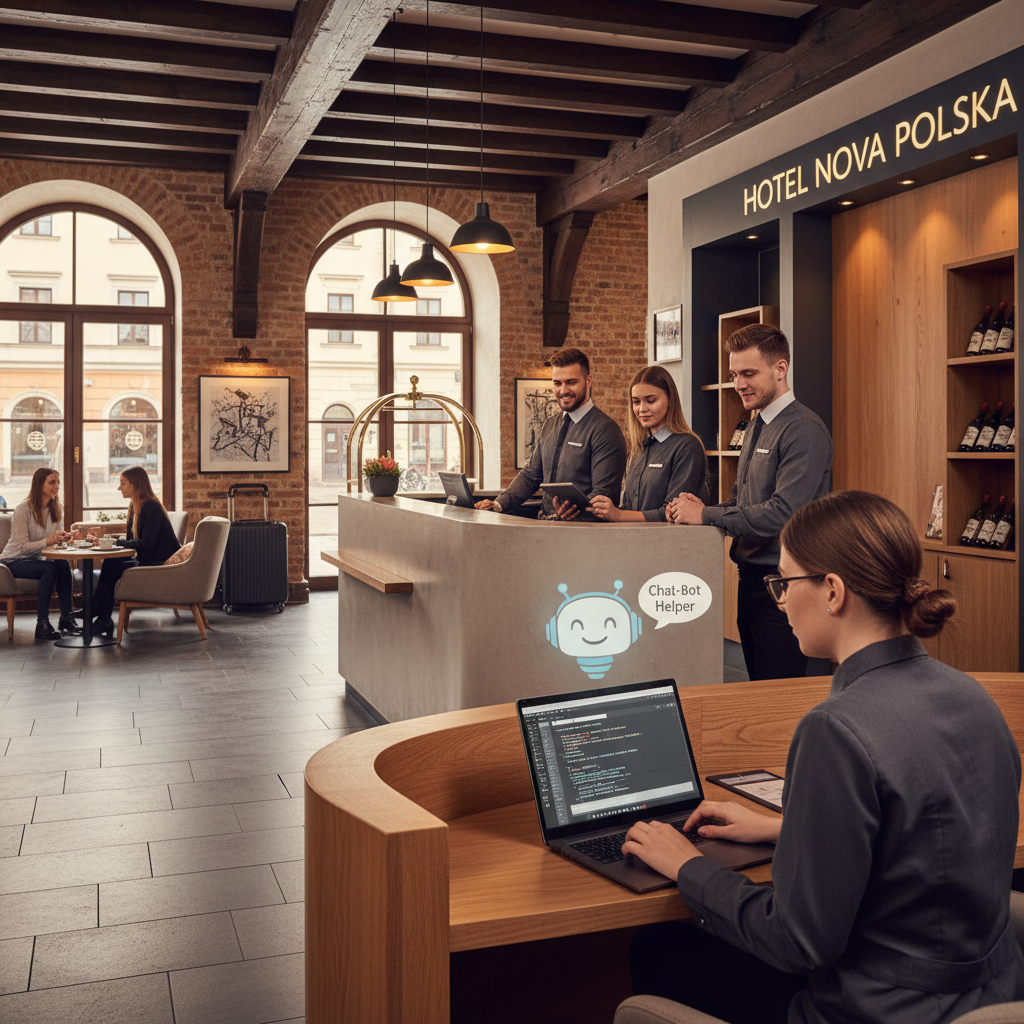 Wchodząc dzisiaj do nowoczesnego hotelu w Warszawie, Gdańsku czy na Mazurach, można poczuć subtelny dysonans. Z jednej strony elegancki wystrój, z drugiej – coraz mniej ludzi przy recepcji. Zamiast klasycznego „dzień dobry” coraz częściej wita cię powiadomienie na telefonie lub… chatbot wyświetlający się na ekranie kiosku samoobsługowego. Według badań, do 2025 roku aż 85% interakcji z klientami w branży hotelarskiej odbywa się bez udziału człowieka – głównie za sprawą chatbotów i wirtualnych asystentów (Statista, 2024).